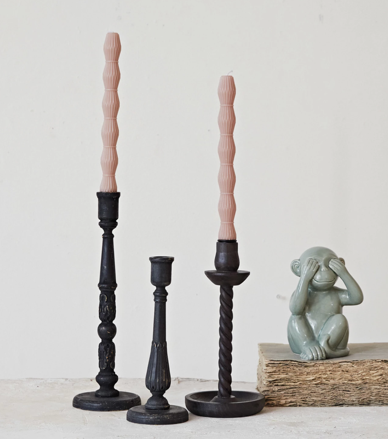 CARVED WOOD TAPER HOLDERS - 3 STYLES