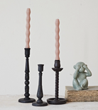 3-3/4" Round x 12-1/2"H, 3-1/4" Round x 9"H & 4-1/2" Round x 9-3/4"H Carved Wood Taper Holders, Distressed Blac