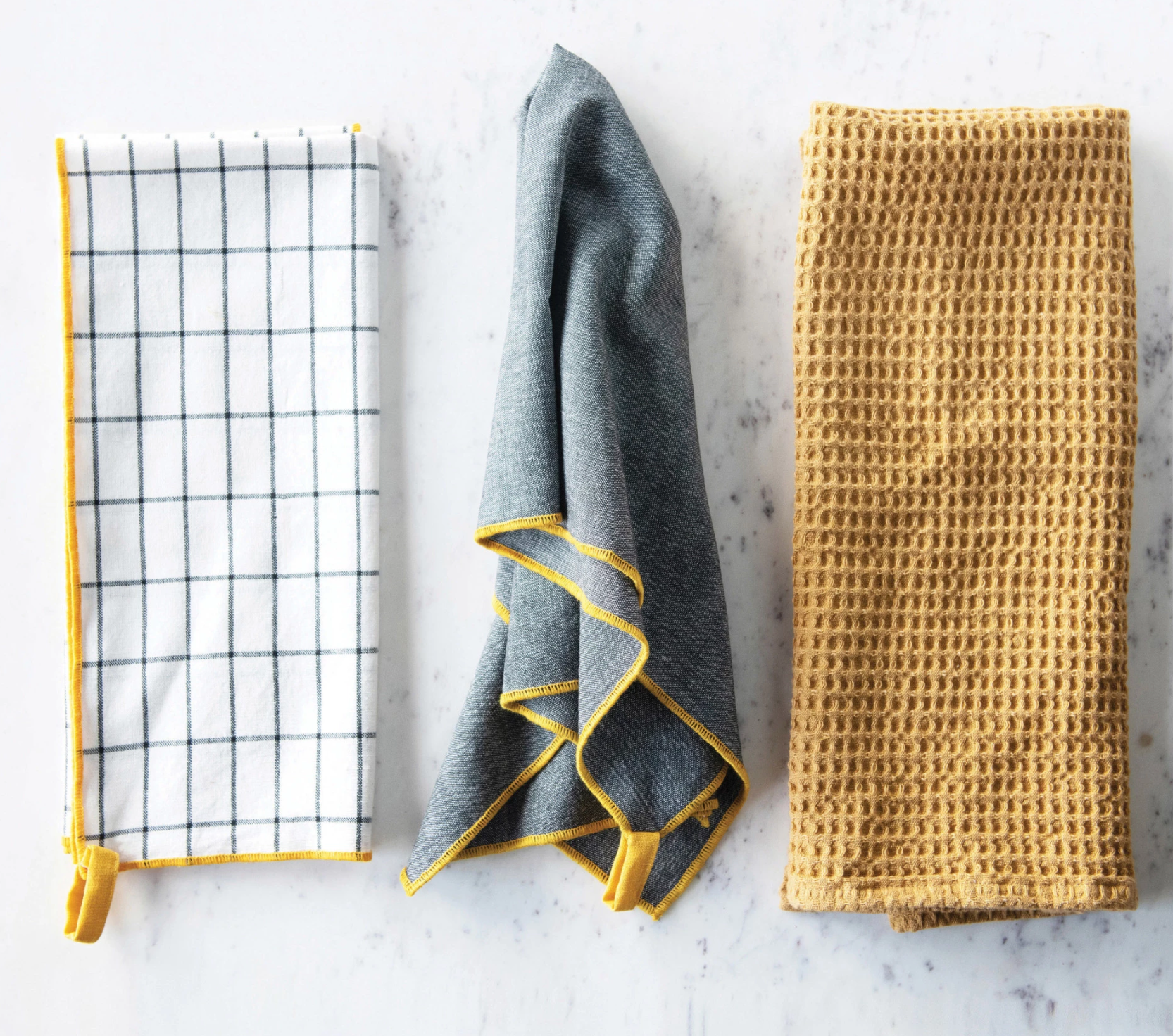 28"L x 18"W Cotton Tea Towels w/ Loops, Multi Color, Set of 3