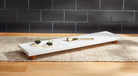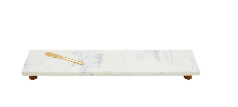 2-piece set. Marble board with mango wood feet. Comes with brass finished spreader.