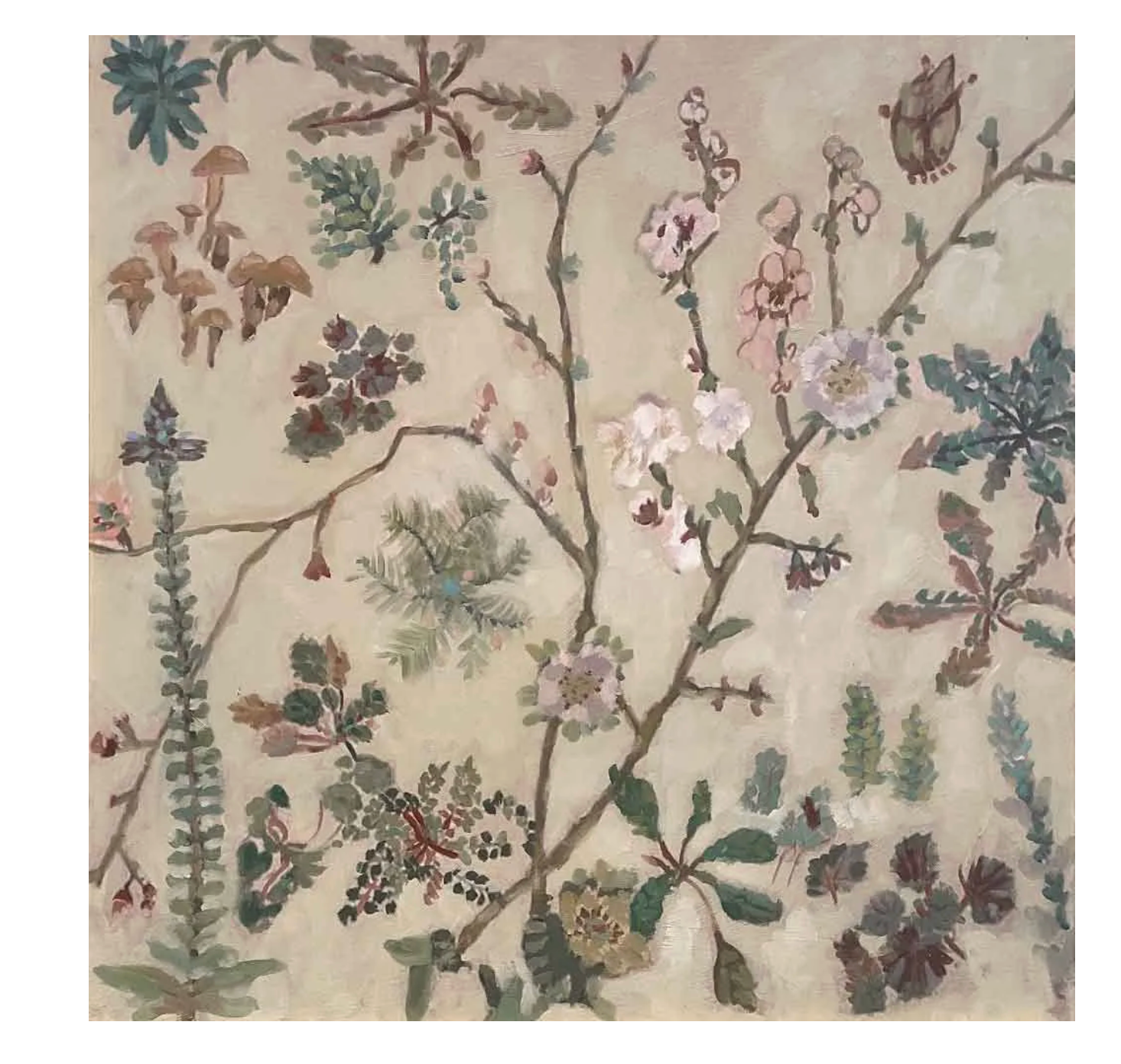 A two-piece botanical reverie, the Foraging series gathers wild stems, seedheads, and field flowers into an airy, tapestry-like arrangement. Fine linework and delicate color create the feeling of a found collection—pressed specimens, sketchbook notes, and garden memory—composed with a comforting balance of ornament and calm.