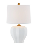 The Gwyneth Table Lamp blends sculptural elegance with a soft, neutral palette. Its white concrete base features a fluted, petal-like design that adds depth and texture, while the brass-finished accents provide a hint of warmth. A crisp white drum shade completes the look, diffusing light beautifully for a warm, inviting glow. With its organic-inspired shape and refined details, this lamp is a perfect statement piece for modern and transitional spaces.