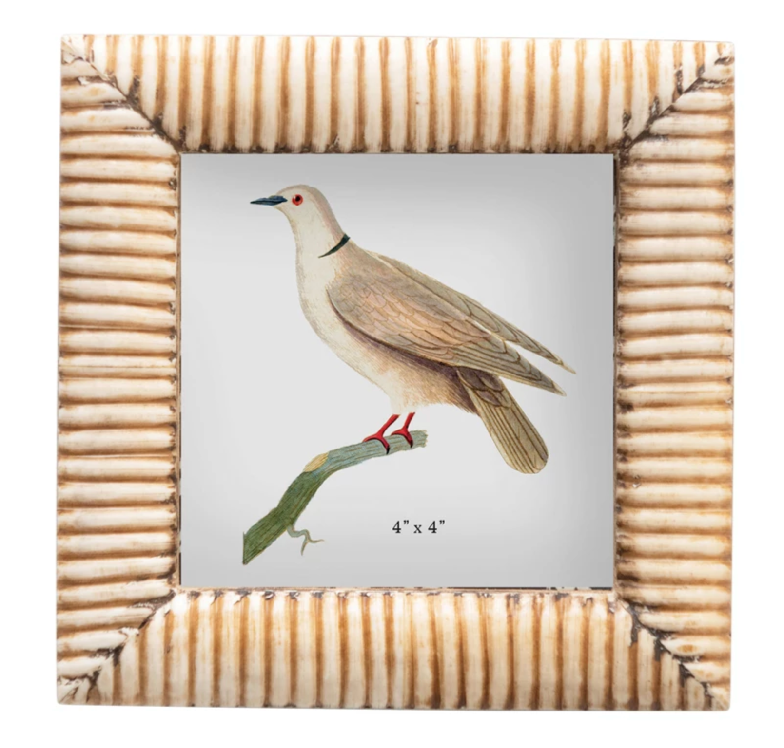 5-1/2" Square Hand-Carved Bone & MDF Photo Frame w/ Ribbed Pattern, Natural (Holds 4" x 4" Photo)