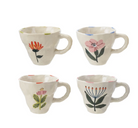 4-1/2" Round x 3-1/2"H 10 oz. Hand-Painted Stoneware Organic Shaped Mug w/ Flower Image, Multi Color, 4 Styles