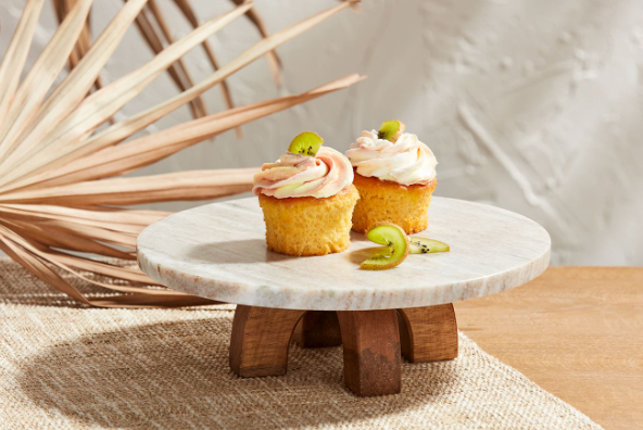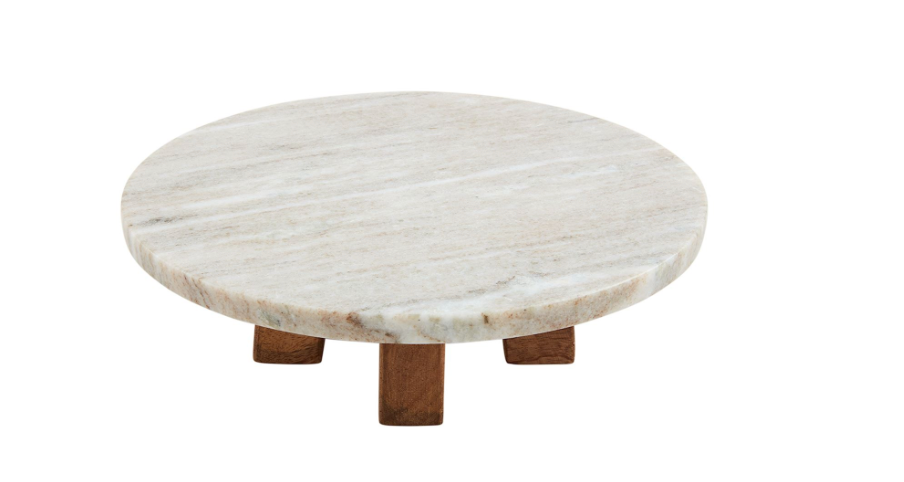 Marble pedestal with wooden legs.