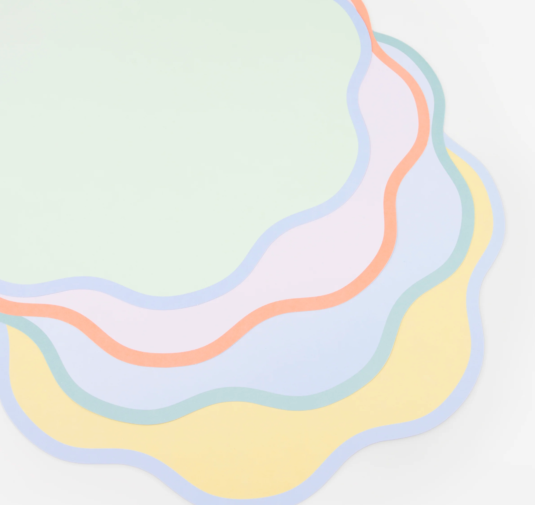They're big, wavy and colorful – the perfect paper placemats to instantly add a fun touch to your party table. They're great for table layering too, and the mix of springtime pastels will team beautifully with your other tableware.