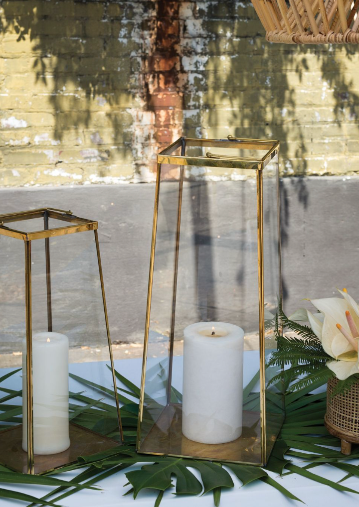 In iron with a gold finish and modern silhouette, the Paramount Lantern comes in 2 sizes and is a unique choice for your next wedding or event.