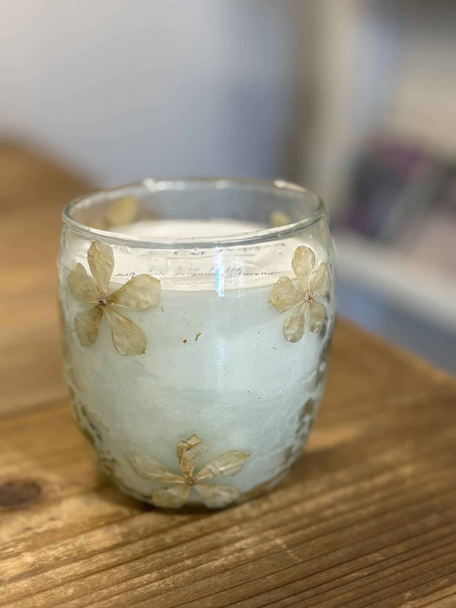 Introducing our signature La Vie Jolie candle in an our glass vessel with enameled cream flower petals. Hand poured with care, our candles are crafted using the finest blend of natural waxes for a clean, even burn. Each candle features a cotton wick and is hand poured. Thoughtfully made to elevate everyday moments with soft light and sophisticated scent. The exquisite design of this candle will undoubtedly stand out.