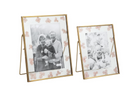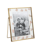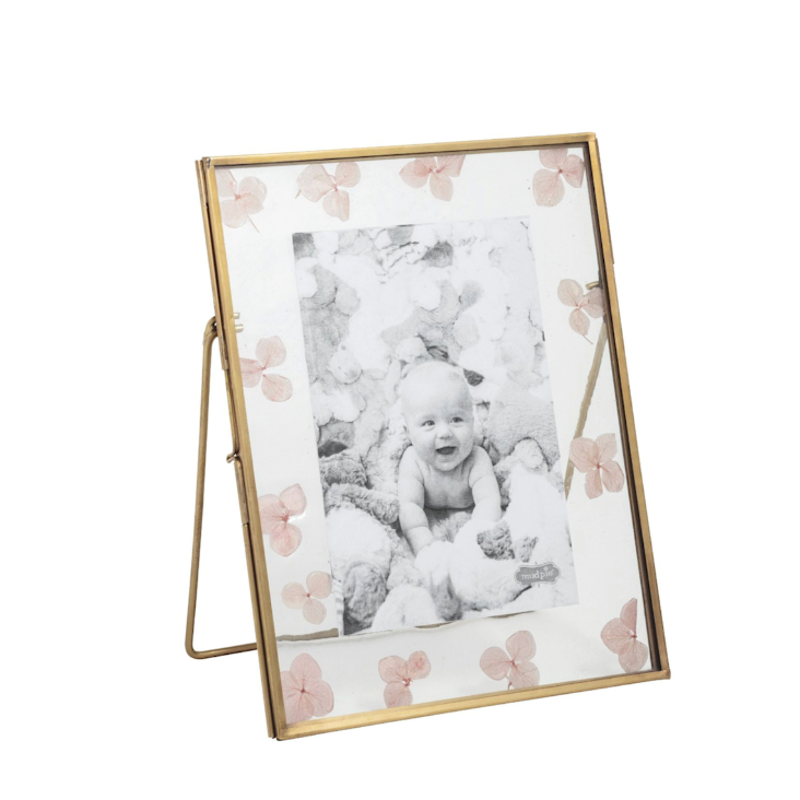 Pressed flower glass 4" x 6" frame features bronze metal edges and back easel.