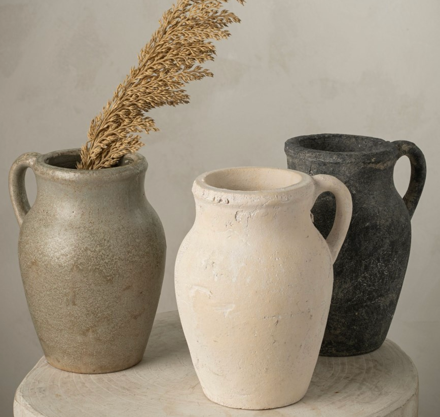 Resembling our Rhodes Pitcher Vase but in a more compact form, this piece exudes an artisanal, unique quality, drawing inspiration from antique forms. The distinctive glazing technique imparts a one-of-a-kind character, and we enhance its natural finishes by styling it with dried or faux flowers.