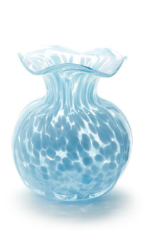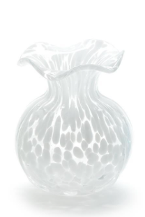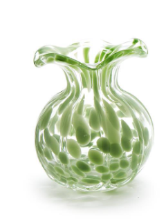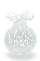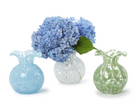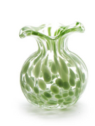 Elevate your floral arrangements with the elegant Ruffled Edge Spotted Vase.. Crafted from delicate glass, this vase comes in three stunning colors White, Blue, and Green, adding a pop of color to any space. Standing at 6 1/4" tall with a 5" diameter, it's the perfect vessel for your favorite blooms.