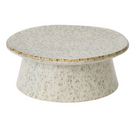 Display an artisanal piece in the kitchen, serve cake, or elevate a plant with the beautiful speckled stoneware Starling Serving Stand. This medium sized piece features a smooth glossy finish with surface variation & a reactive glaze of green, brown & gold flecked over a warm creamy neutral base.