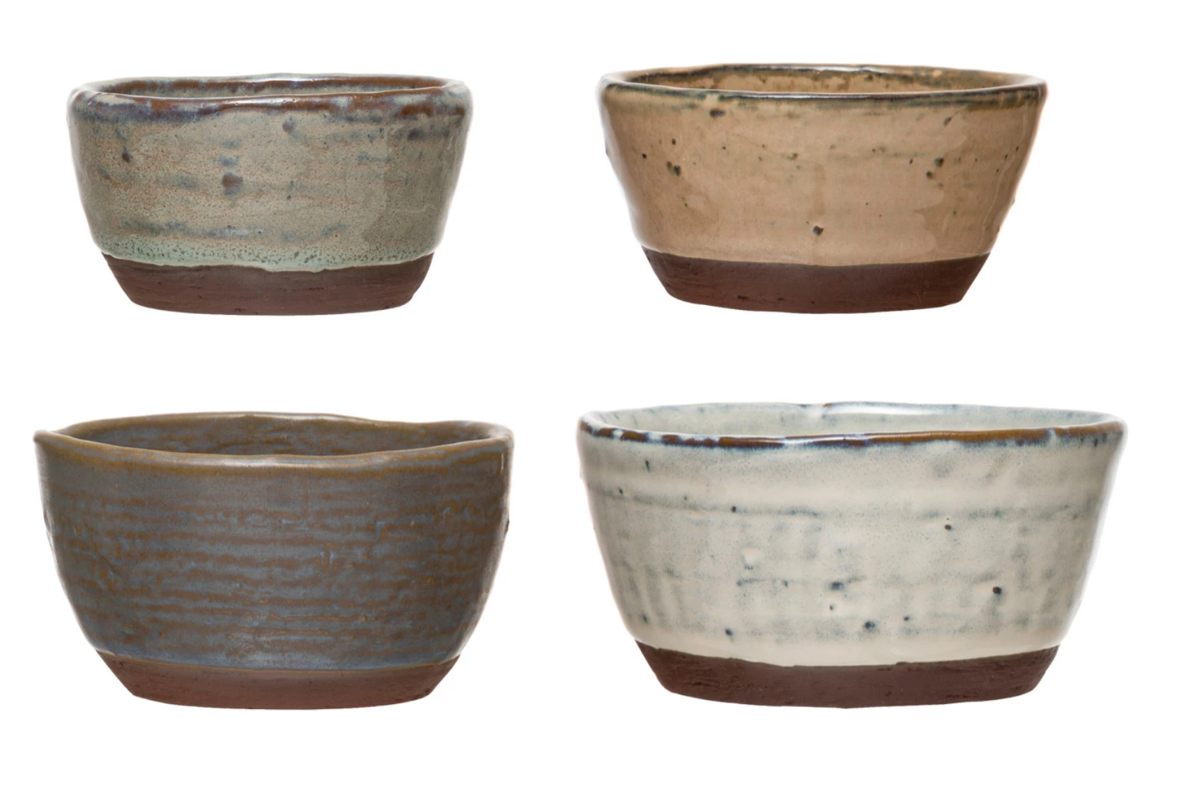Bring more style to your customer's kitchen with this set of decorative bowls that makes a perfect statement piece. Made with stoneware, these small bowls have a unique reactive glazed finish, which allows them to stand out as artistic accent pieces. These ceramic bowls are ideal for all uses, whether using them for desserts, snacks, pasta, ice creams, or cereals. Great for serving salsa or other condiments; these adorable ones that are just the right size. Each of these bowls has a slightly different size and finish, making each one of them a one-of-a-kind piece.