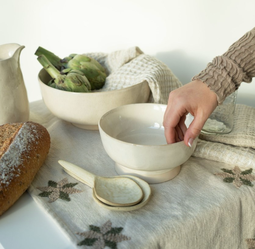 Handcrafted, the stoneware Stowe Pedestal Bowl brings heirloom pottery style to the modern household. Beautiful creamy reactive glaze and an unglazed pedestal bottom elevate the practical. Use it as an everyday favourite to serve side dishes and salads. Microwave/Dishwasher Safe.