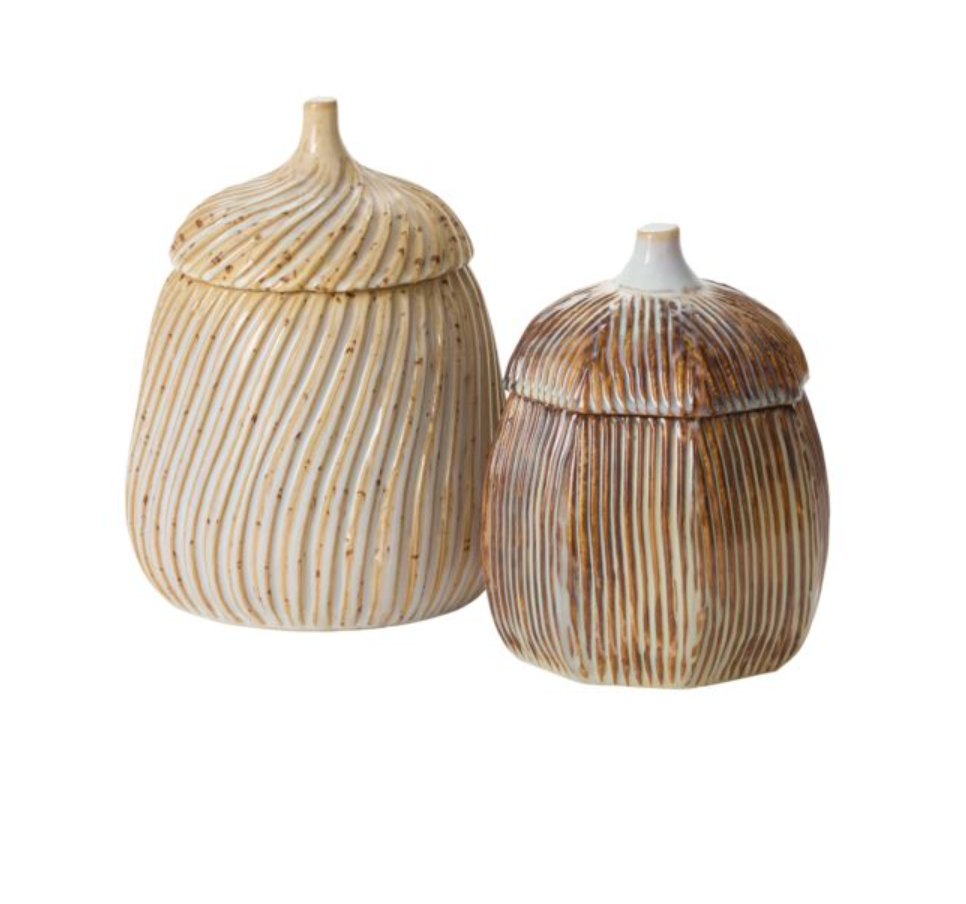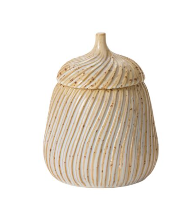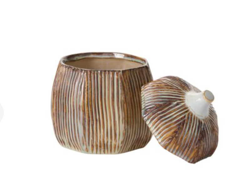 Elevate your autumnal decor with the Sweet Birch Canister. Crafted from food-safe ceramic, this canister brings an artisanal touch to your home with striking carved details and a capped lid. Perfect for storing kitchen essentials, this piece combines functionality with style, making it a beautiful addition to any countertop or shelf.