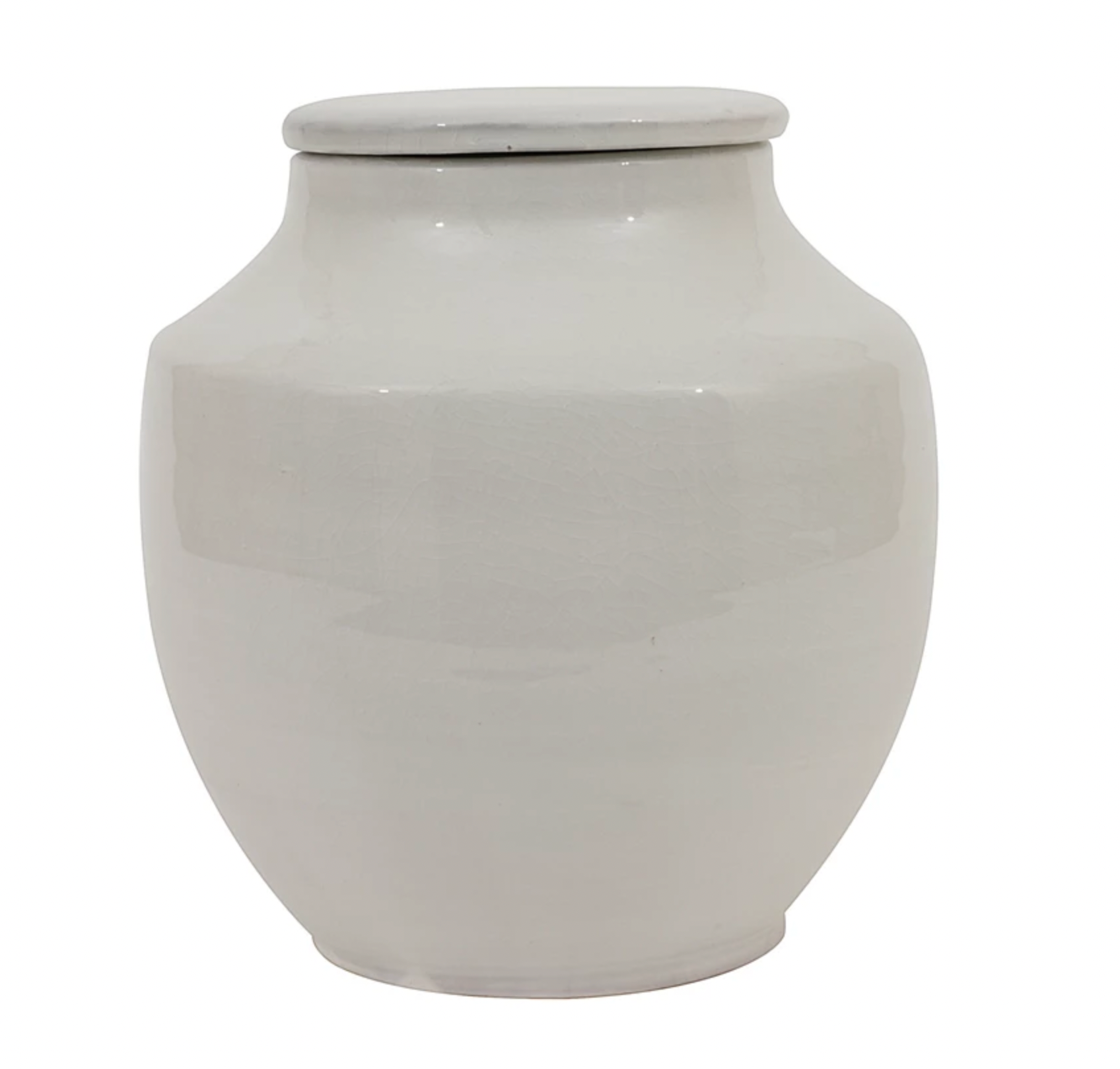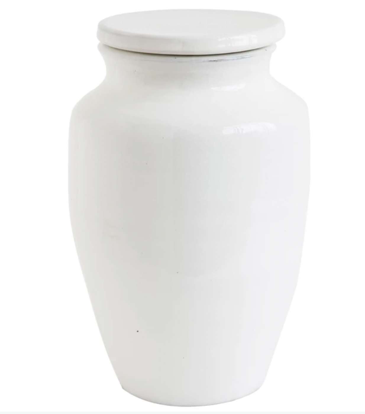 This white cachepot will complement any shelf or table. Great for displaying fresh flowers or simply by itself as a decorative piece. Adds charm and easy to display in any space. With the included lid, you can also store items inside and keep your home looking neat and clean.