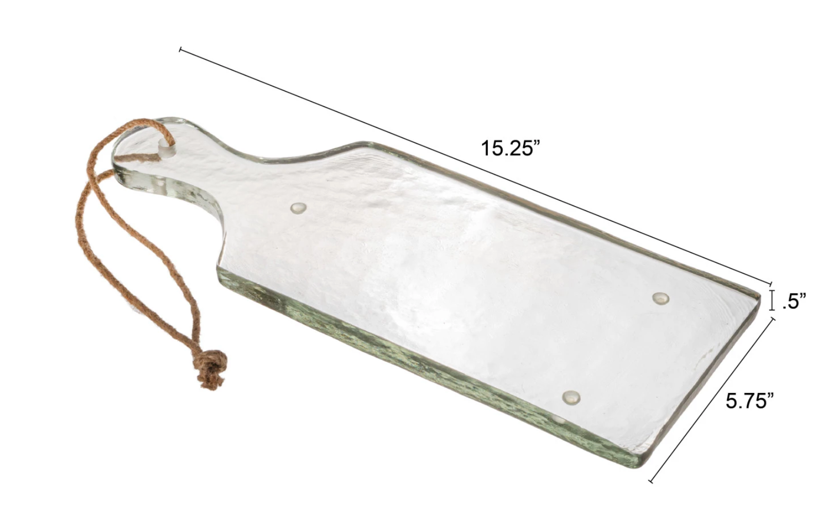 15-1/4"L x 5-3/4"W Textured Glass Cheese/Serving Board w/ Handle & Jute Tie