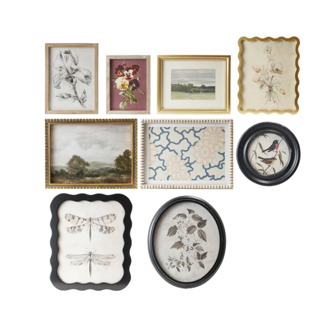 10"H - 19-1/2"H Wood Framed Glass Wall Décor w/ Landscapes, Botanicals & Insect Prints, Multi Color, 9 Styles