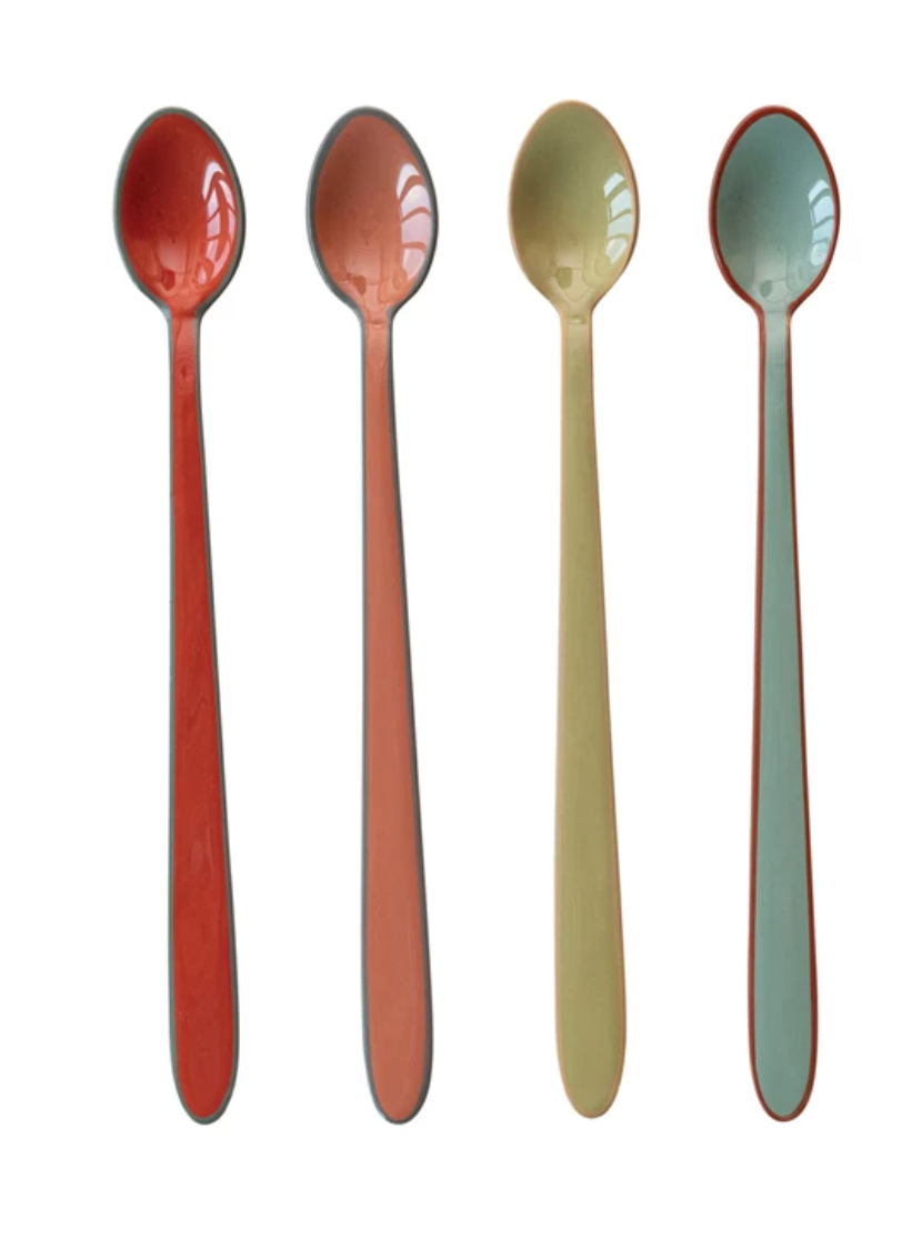 ENAMELED STAINLESS STEEL COCKTAIL SPOONS - 4 COLORS