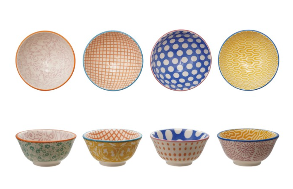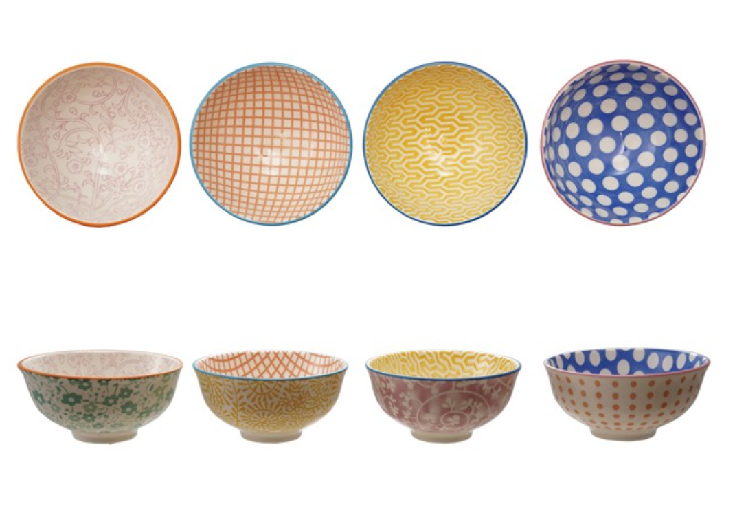 STONEWARE PATTERN BOWLS - 4 STYLES