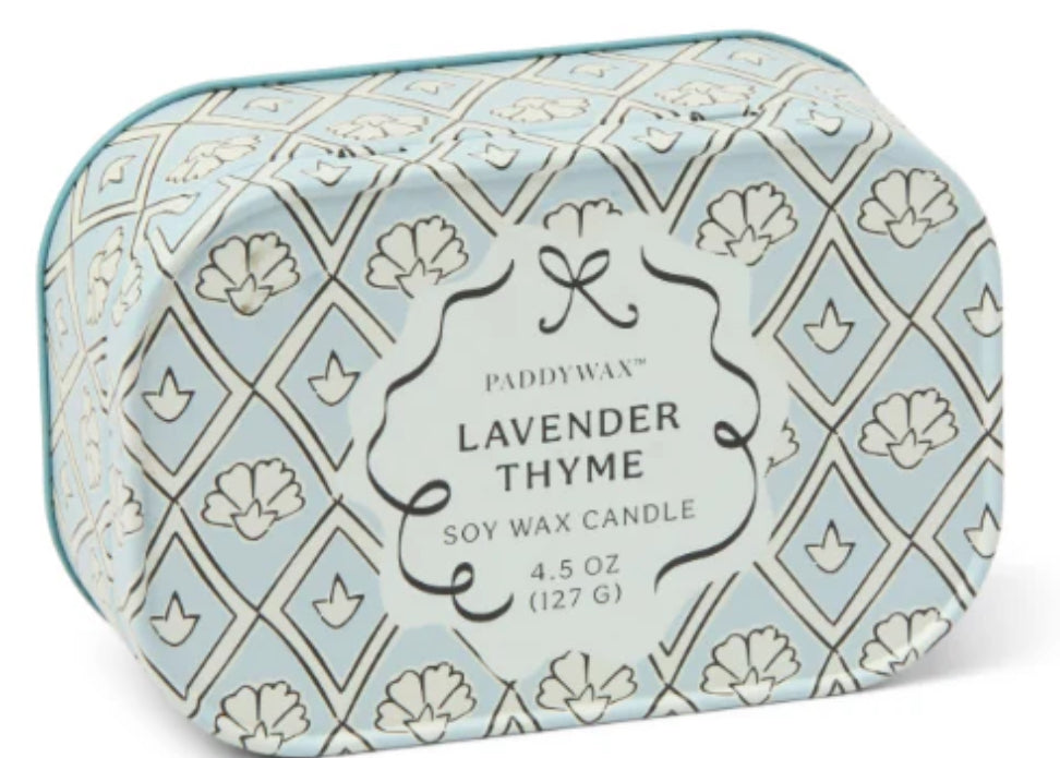 CHERIE CANDLE IN PRINTED TIN - LAVENDER & THYME