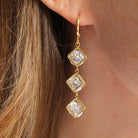 Radiate pure elegance with our Shine Bright Triple CZ Drop Earrings. Featuring three brilliant cushion-cut cubic zirconia stones set in polished gold frames, these earrings capture the perfect balance of glamour and grace. Lightweight with endless sparkle, they’re ideal for weddings, holiday events, or simply adding a touch of luxe to your everyday look.