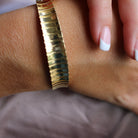Polished, powerful, and full of shine — our Shine Bright Textured Gold Cuff Bracelet is the ultimate statement of modern simplicity. The gently ribbed, reflective surface catches the light beautifully, adding subtle dimension and glow to any look.