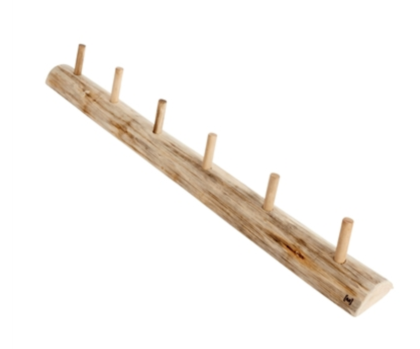 Fir wood rack from Muubs. Muubs is an established Danish Brand new to the American Market. The design philosophy aims to find beauty in imperfection, and to imbue storage solutions, tableware, and home accessories with the beauty of nature. Natural Scandinavian design. The coat rack is suitable for kitchen towels, aprons, cutting boards, griddles and much more. Use it in the kitchen - or in the bathroom for towels, clothes and hair accessories.