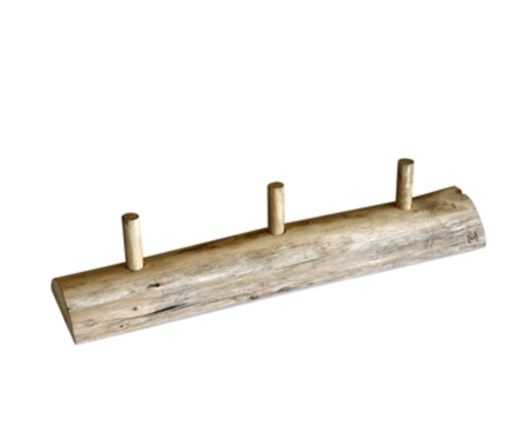 Wooden coat rack from Muubs with three hooks. Muubs is an established Danish Brand new to the American Market. The design philosophy aims to find beauty in imperfection, and to imbue storage solutions, tableware, and home accessories with the beauty of nature. Natural Scandinavian design. Use the hooks for your towels, hang on your clothes while you are in bath or use it for kitchen towels. The wooden rack is designed in solid fir.