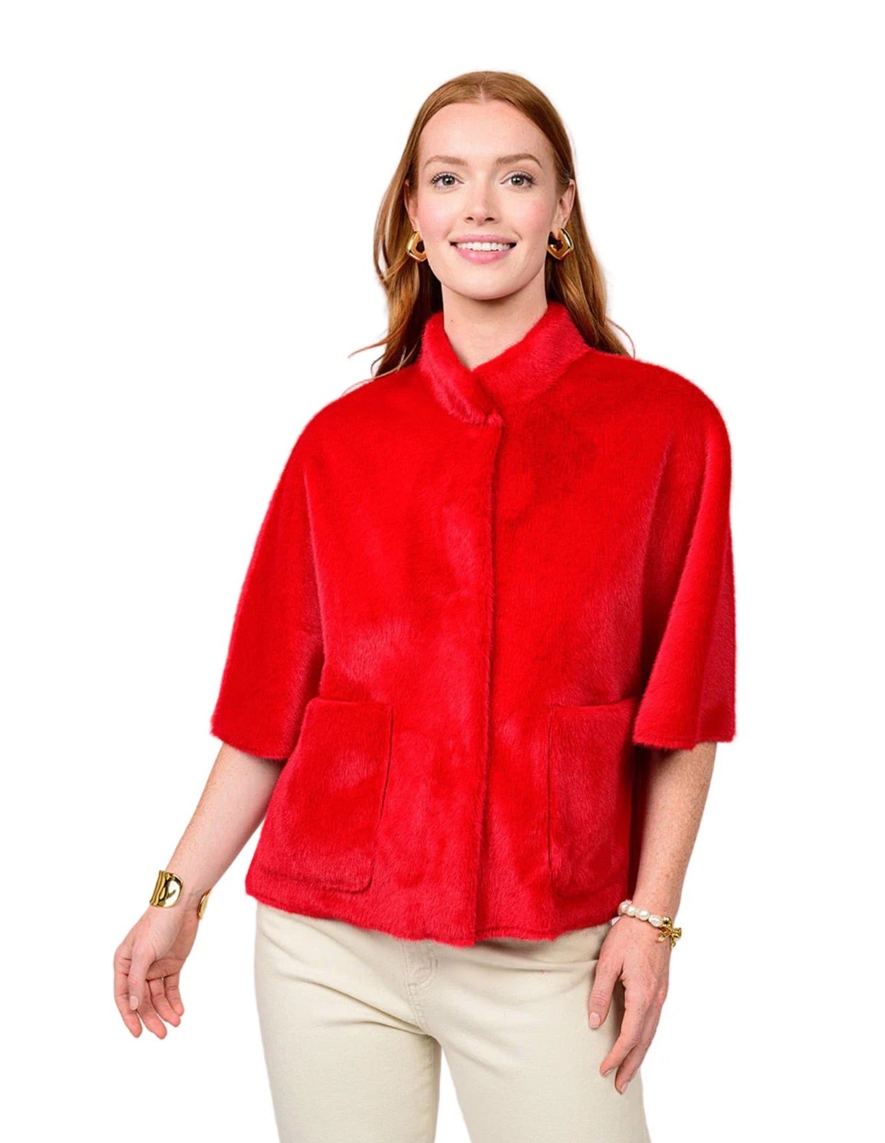 FAUX CAPELET JACKET - RED