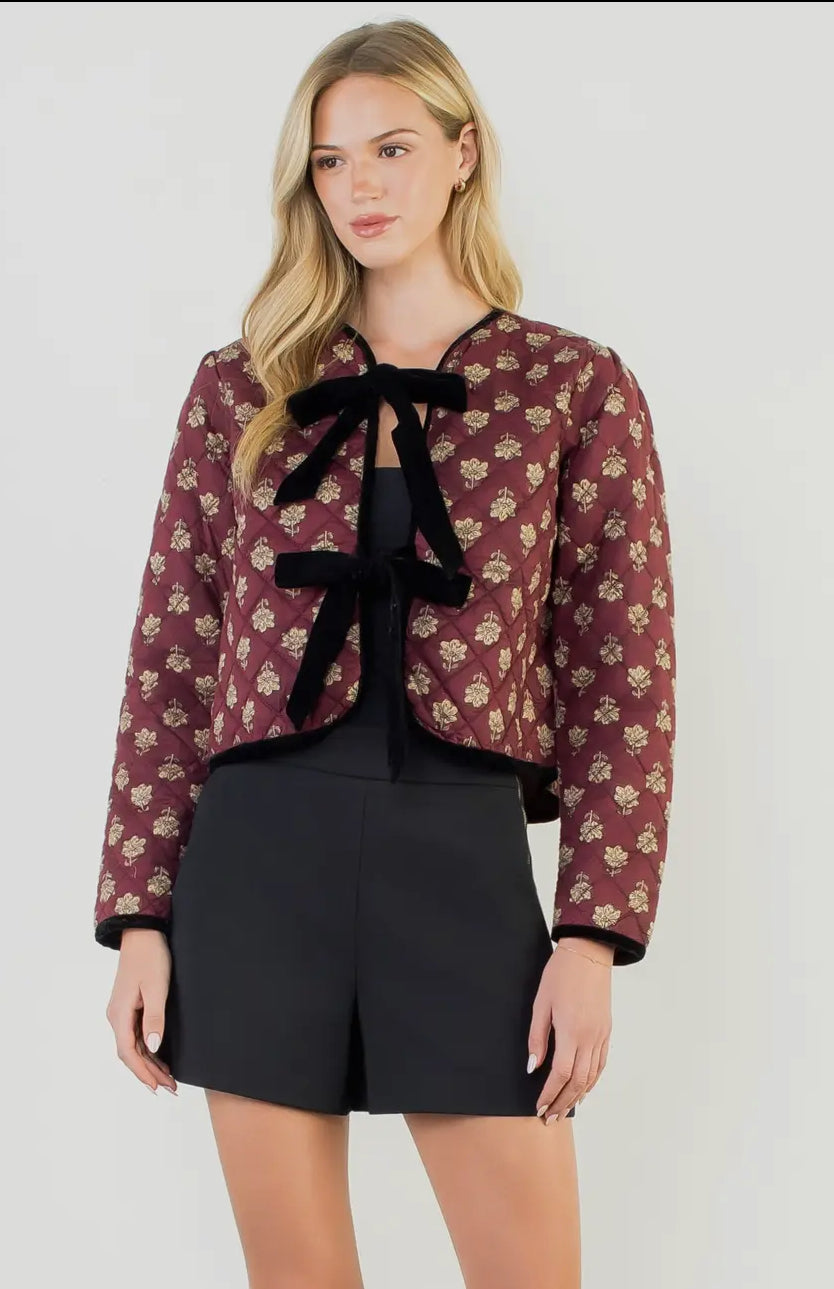 TIE FRONT QUILTED JACKET - MAROON