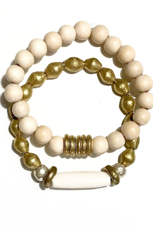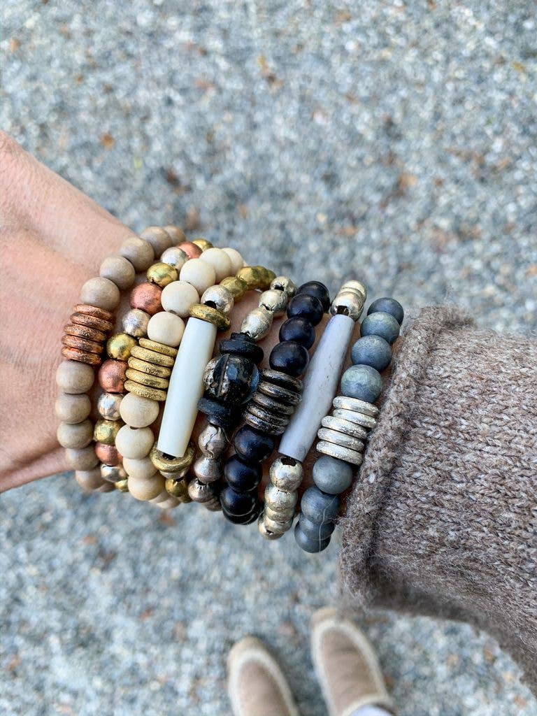 The Twine & Twig Duo bracelets are designed using globally sourced beads. They can be worn individually or stacked up. Fits wrist size 7".