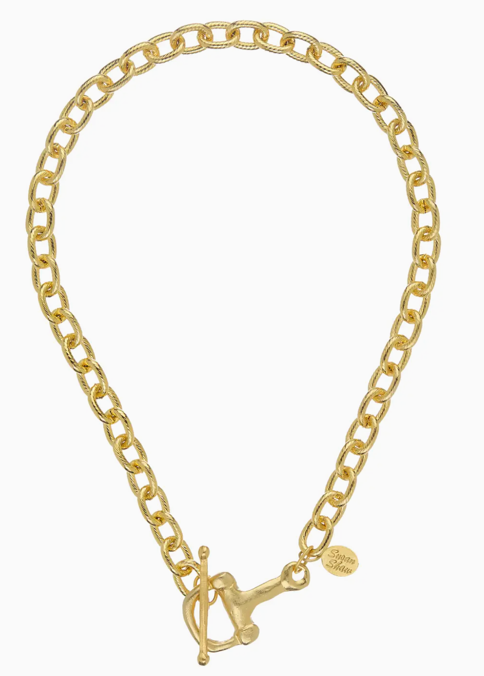 Experience elegance with the Gold Horse Bit Toggle - No Charm from Susan Shaw. This Link & Chain Necklace is a timeless piece, reflecting over four decades of unique and elegant design expertise.