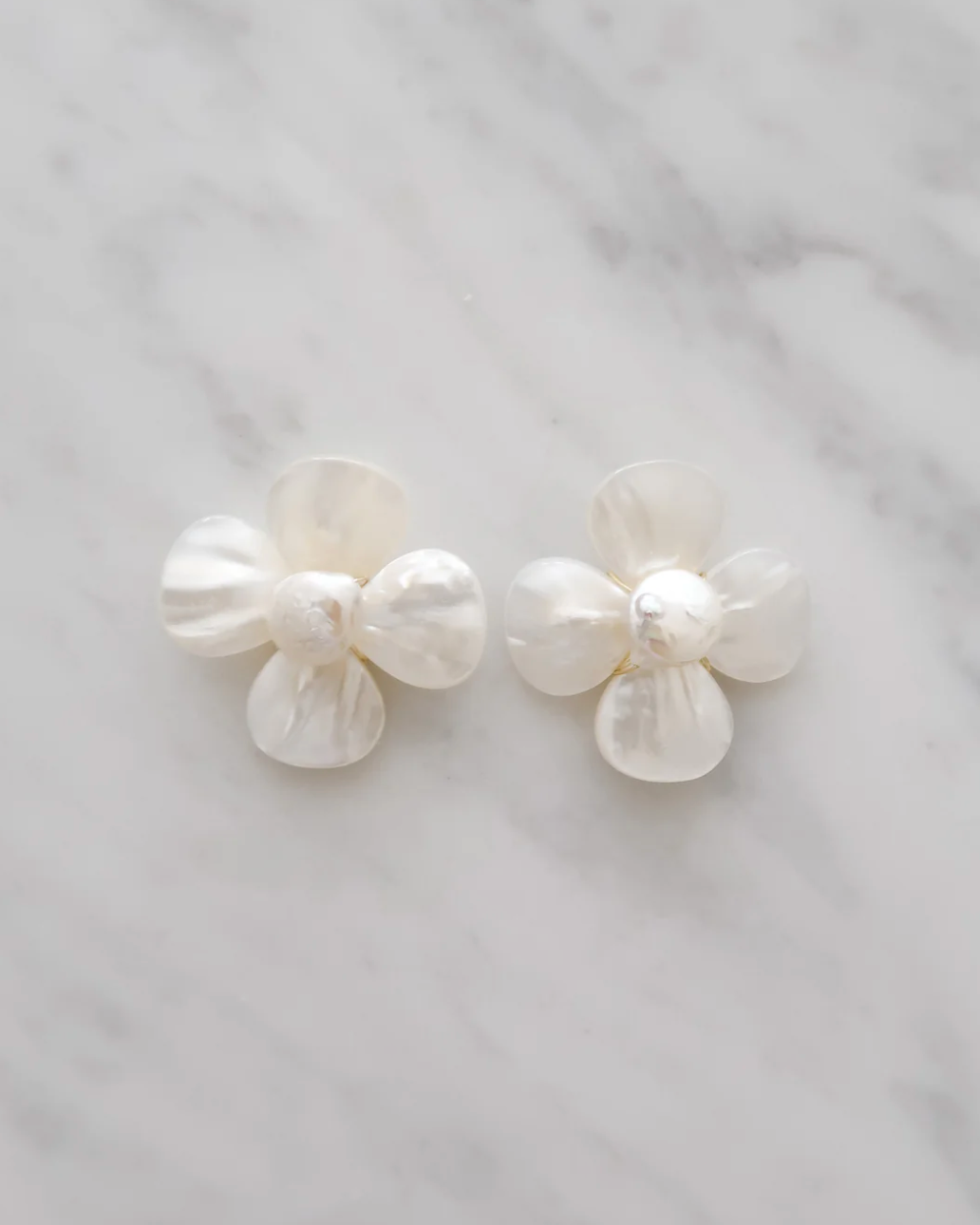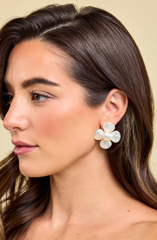 Add a touch of elegance to your look with our Katherine Petal Earrings. These best-selling flower studs are crafted from lustrous mother of pearl, with a freshwater pearl center that exudes timeless sophistication. Perfect for brides, bridesmaids, or any special occasion, the Katherine Petal Earrings offer lightweight luxury and a refined, feminine touch to elevate your style.