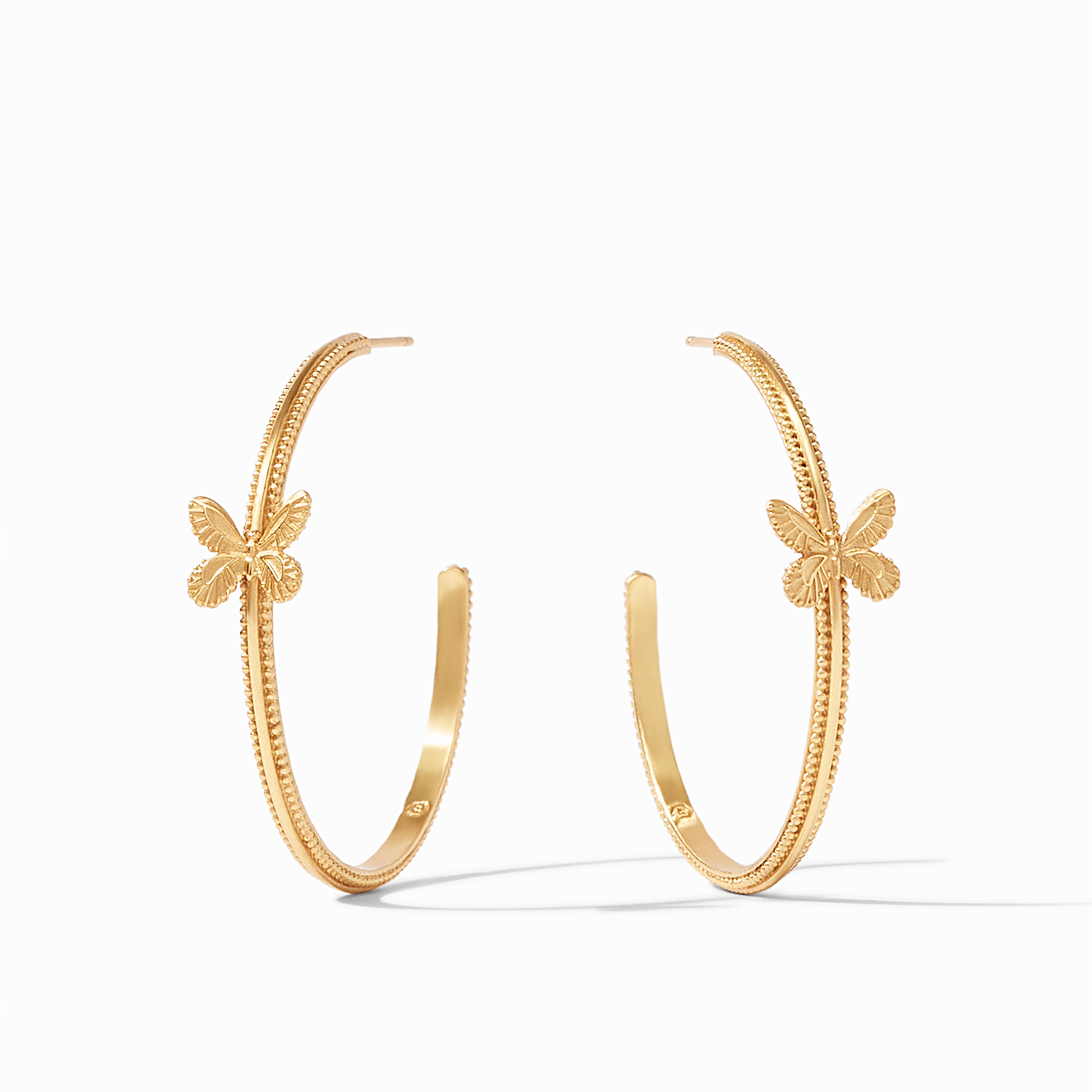 Golden hoop accented with a playful butterfly and finished with a beaded edge.