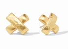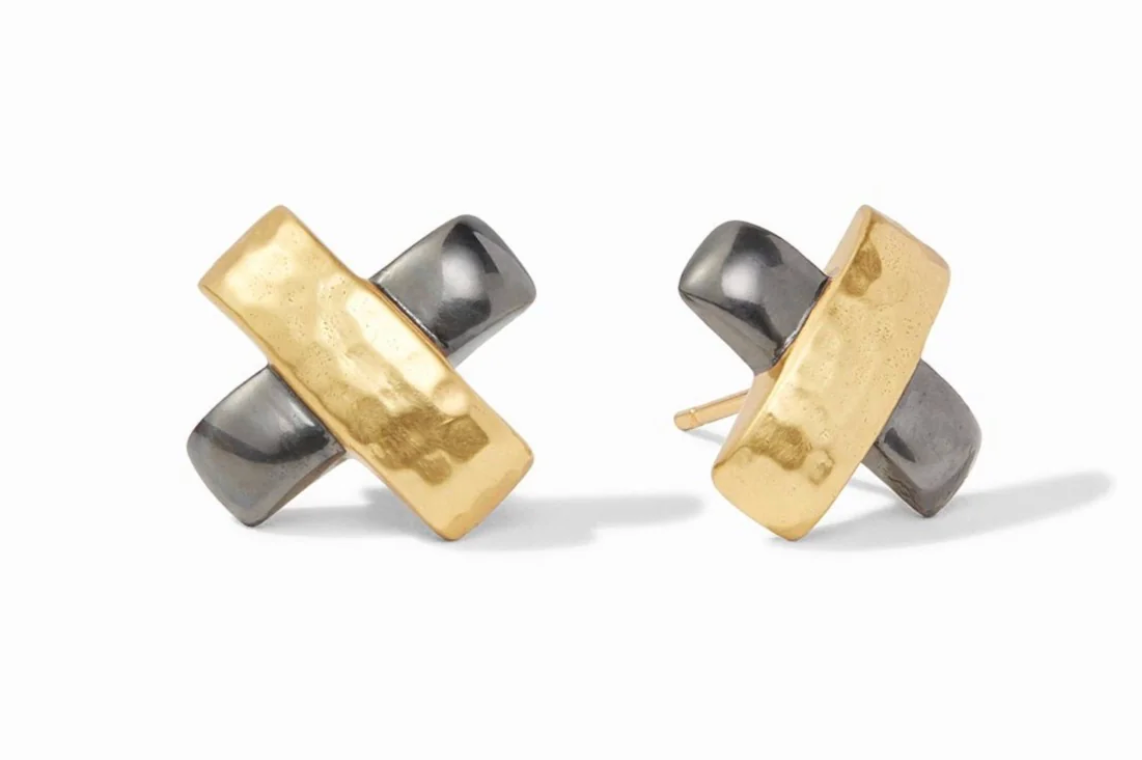 Smooth meets texture in the overlapping elements of the X-shape, a lightly hammered bar atop another bar with a satiny finish.