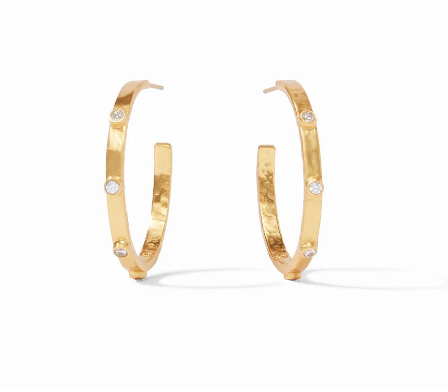 Lightly hammered hoop with gemstone accents.