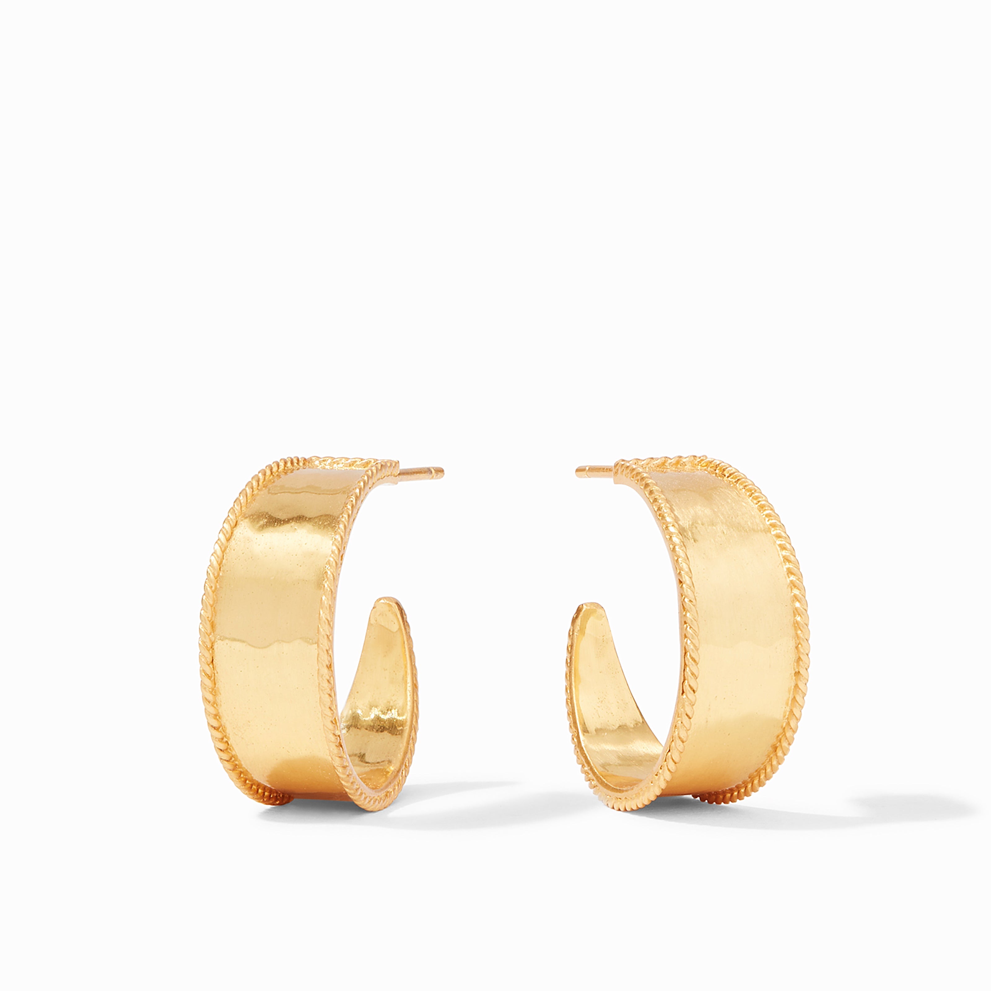 Lightly hammered hoop that elegantly curves from wide to narrow, finished with with twisted wire detail.