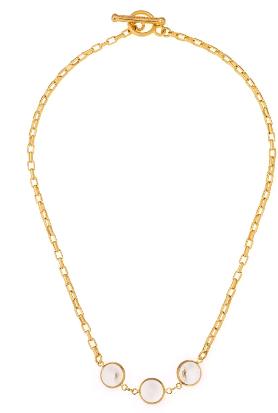 This necklace features our Loire chain with an Austrian Crystal Rivoli trio. Totally stunning all by itself and even better when paired with another one of our designs.
