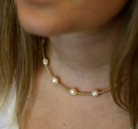 This gold hematite and freshwater pearl necklace is a must have for your jewelry wardrobe. It measures 16"-17 1/2" and is a beautiful, long lasting piece that you will dress up or dress down. We love a pretty pearl necklace and this one is fabulous!