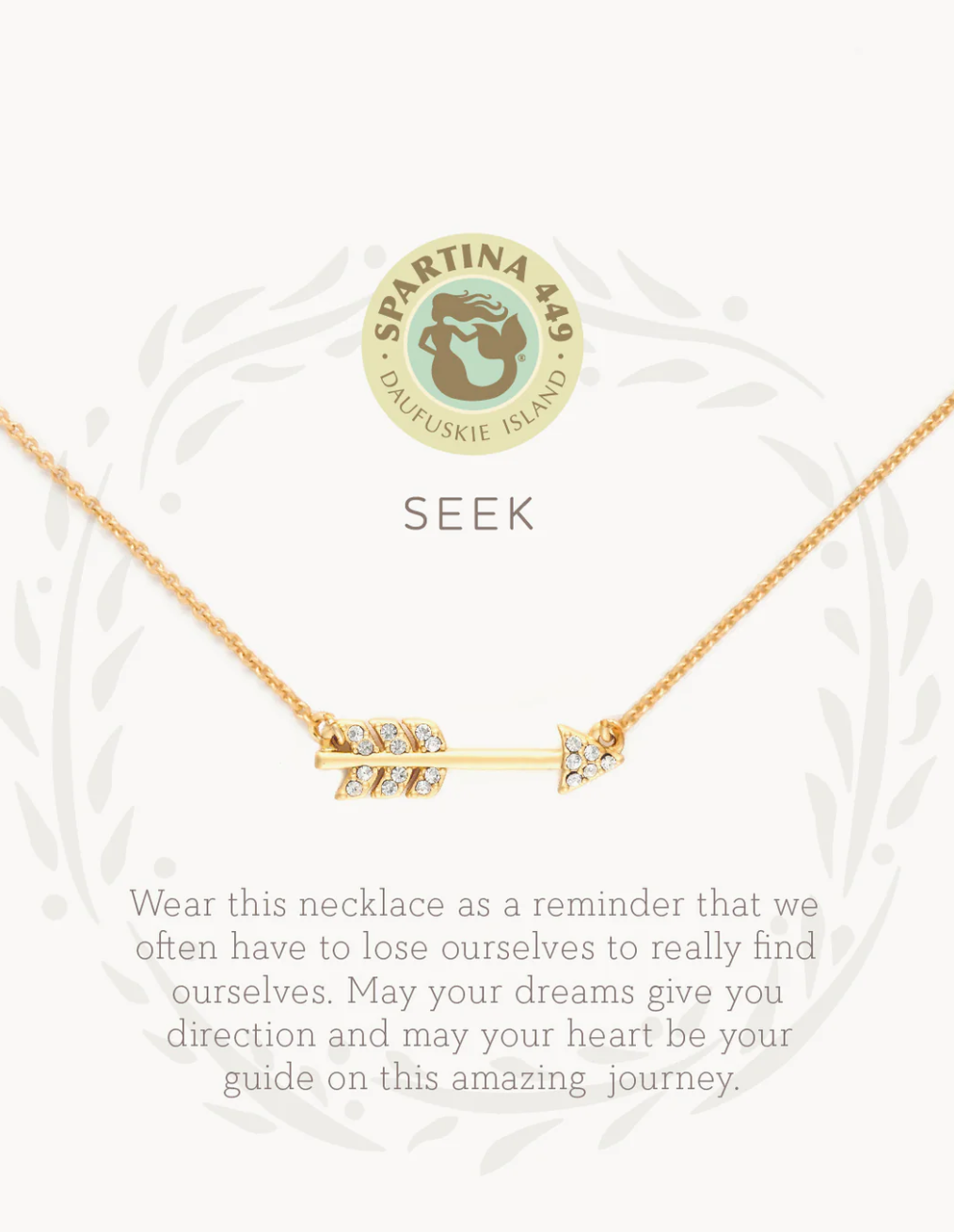 Wear our Seek Necklace as a reminder to let your heart be your guide. Featuring an arrow charm, this special piece comes packaged inside a beautiful box with the message: "Wear this necklace as a reminder that we often have to lose ourselves to really find ourselves. May your dreams give you direction and may your heart be your guide on this amazing journey."