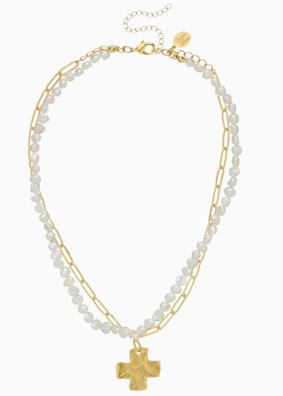 It's never been easier to achieve a layered look than with the Cross Piper Paperclip Necklace. This dainty, double-strand necklace takes the guesswork out of layering your jewelry — plus, it won't tangle. Featuring genuine freshwater pearls and our bestselling paperclip chain with a classic cross pendant, the Cross Piper Paperclip Necklace will instantly and effortlessly add a little extra something to any outfit.