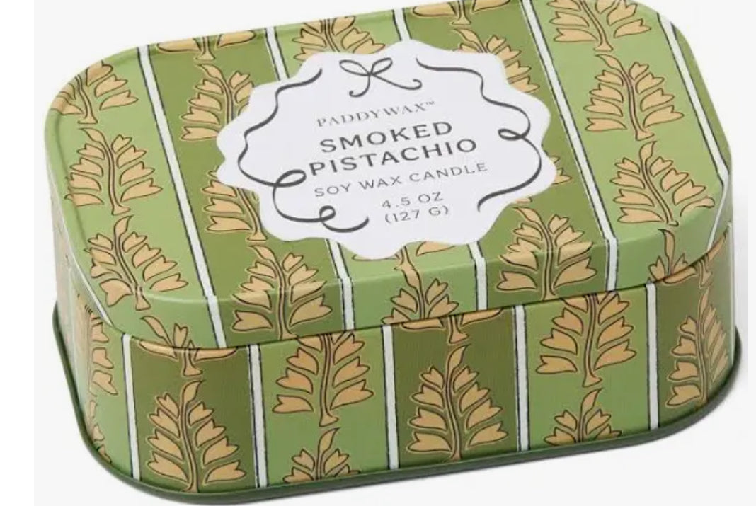 CHERIE CANDLE IN PRINTED TIN - SMOKED PISTACHIO