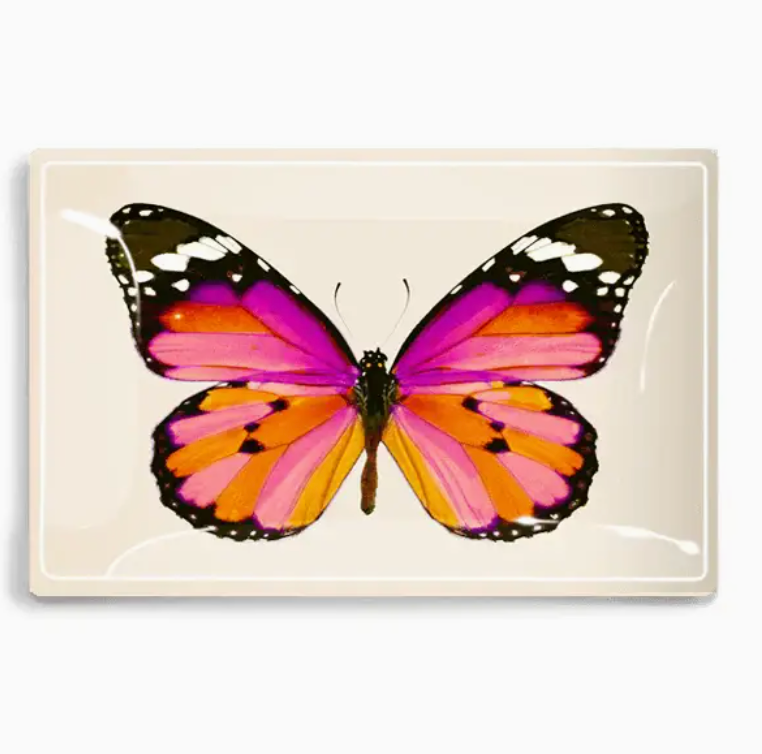 PINK SARDINIA BUTTERFLY DECOUPAGE GLASS TRAY