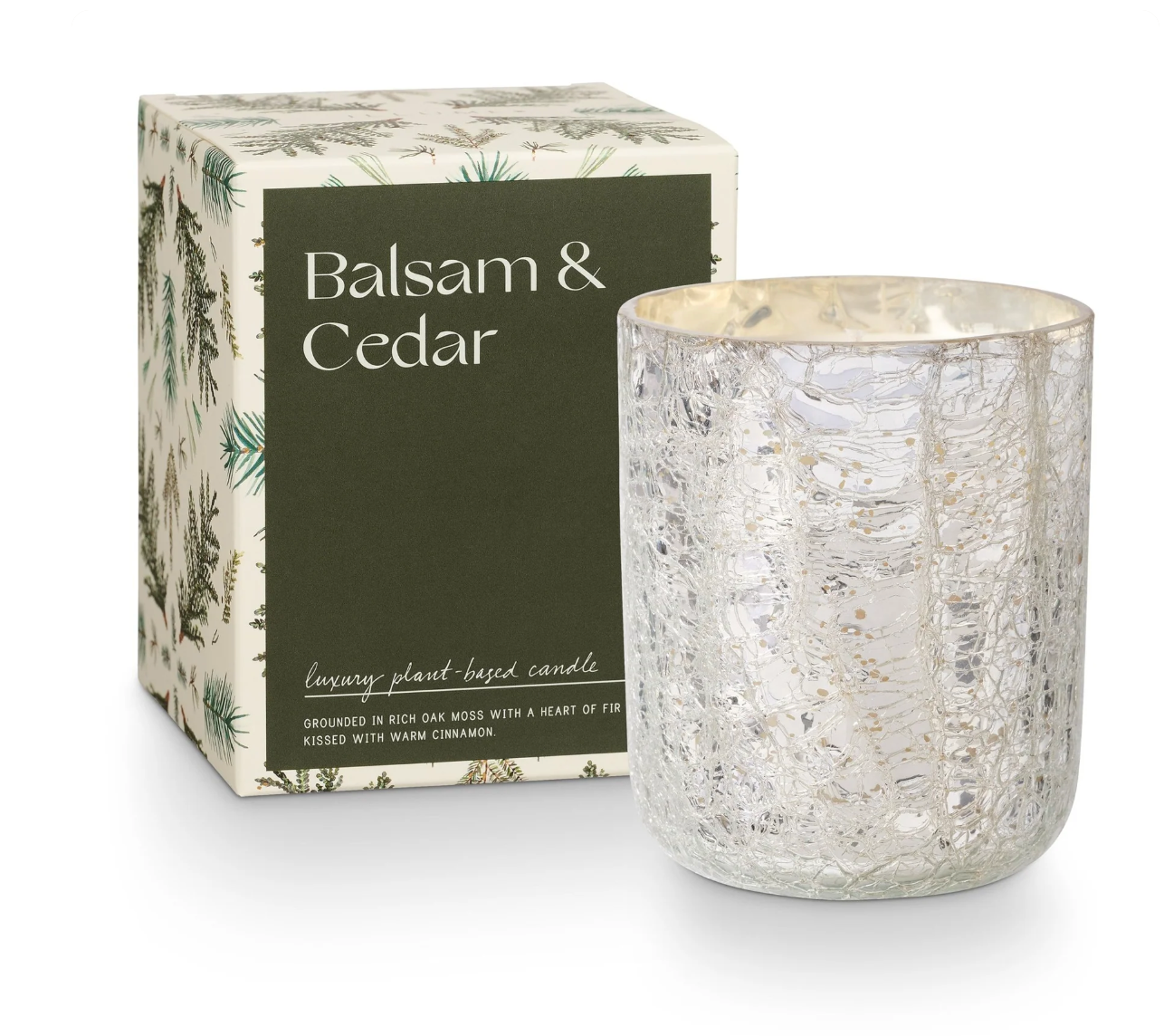 BALSAM CEDAR BOXED CRACKLE GLASS CANDLE