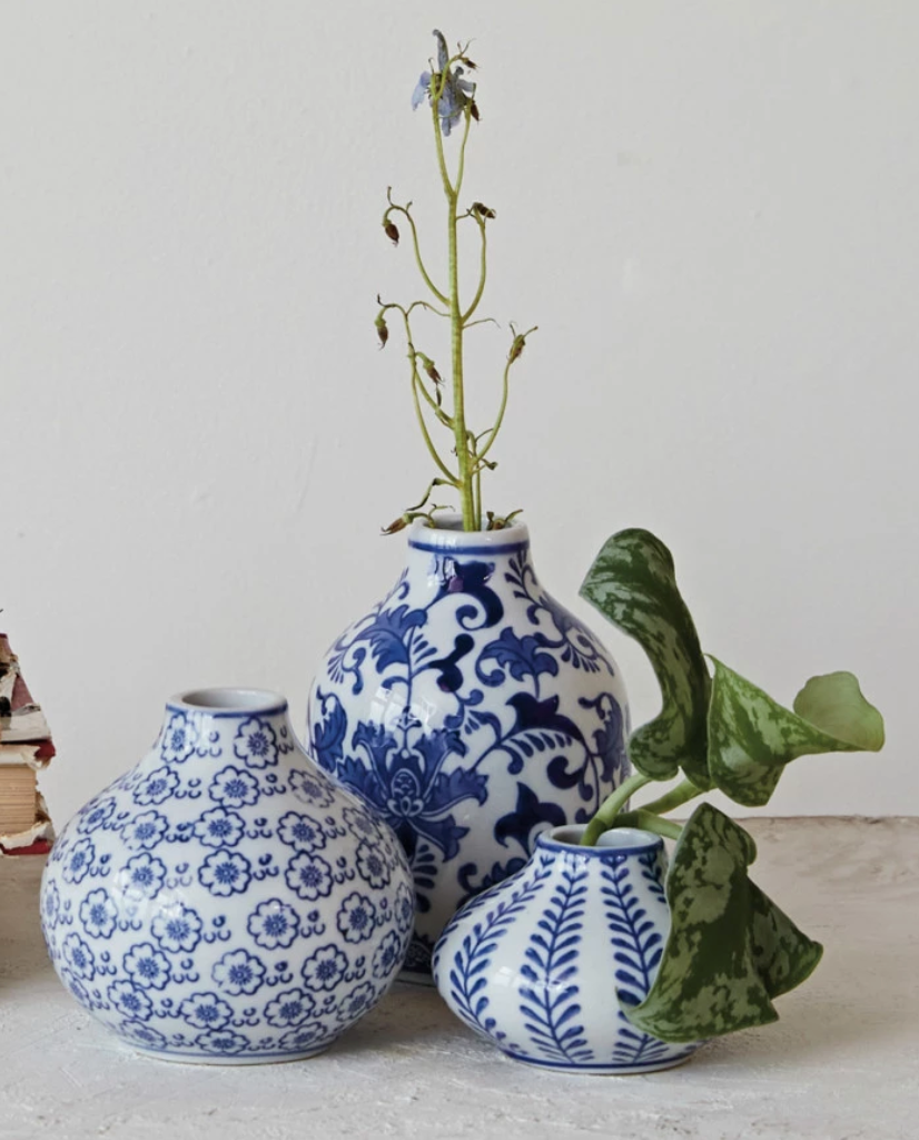 HAND-STAMPED STONEWARE VASE - 3 STYLES