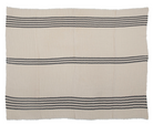 60"L x 50"W Woven Cotton Double Cloth Stitched Throw w/ Stripes & Frayed Edges, Cream Color & Black