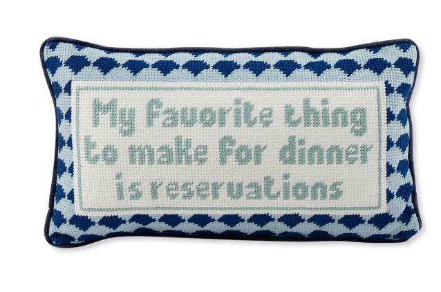 For the ones who know their culinary skills are best served outside the kitchen. This pillow is for those who say, ‘My favorite thing to make for dinner is reservations,’ because why cook when you can dine in style?