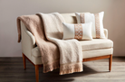 Woven boucle throw blanket with contrast tassel fringe in cream.