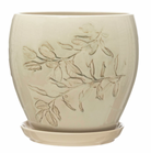 7-1/4"L x 7-1/2"W Debossed Stoneware Planter w/ Saucer & Botanical Pattern, Reactive Crackle Glaze, Cream Color & Green, Set of 2 (Holds 6" Pot) (Each One Will Vary)